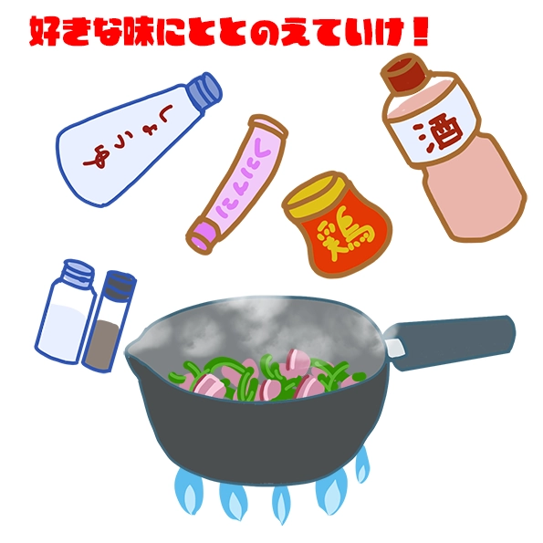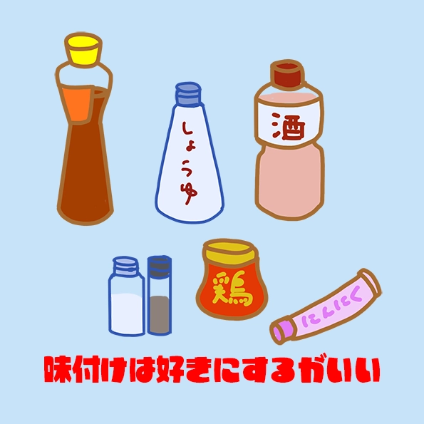- 料理酒(味を見て入れろ)