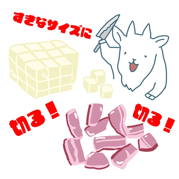 そしてお豆腐とベーコンを食べやすいサイズに切っておこう