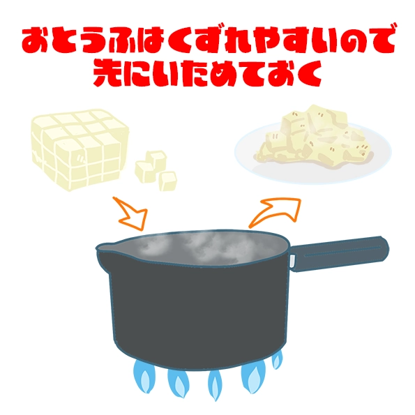 うっすら煙が出始めたら入れていい合図、豆腐を投入